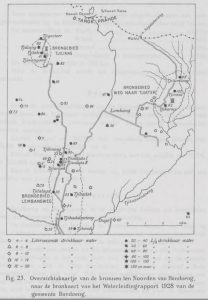 Menurut laporan komisi tersebut (Waterleidingrapport) pada 1924, sumber-sumber air itu dibagi ke dalam empat kompleks. Kompleks 1 di sekitar Jalan Raya Lembang (Lembangweg), meliputi mata air Cibadak, Cikendi, Cicariuk, Cisalada 1 dan 2, serta Cipulus. Kompleks 2 di Sukawana meliputi mata air Ciliang dan Ciwangun. Kompleks 3 di wilayah dekat Ciater meliputi mata air Citamiang, Ciréot, dan Cikaréo. Kompleks 4 di dataran tinggi timur laut Bandung, meliputi Cilémbang, Cimenyan, dan Cibuntu.
