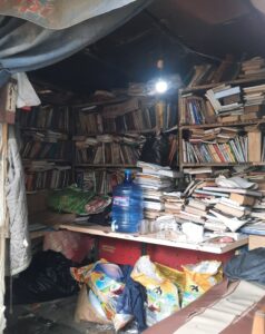 Langkah demi langkah tercium bau khas dari kumpulan buku lawas saat memasuki kios tersebut. Saya pun dikelilingi oleh tumpukan-tumpukan buku dengan tampilan kertas yang telah berjamur dan berdebu.