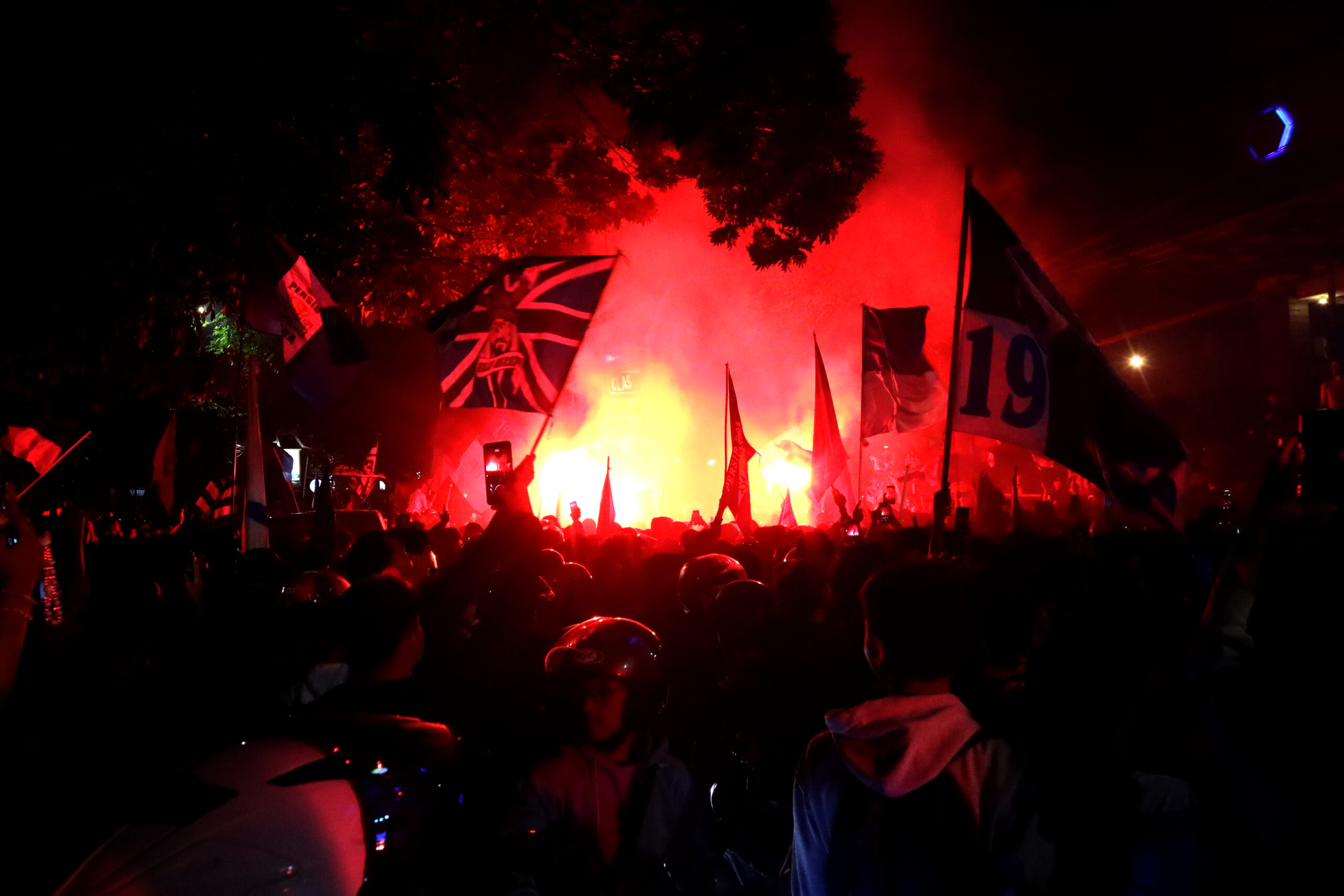 Antusiasme masyarakat Bandung malam itu sangat luar biasa. Konvoi kendaraan memenuhi jalanan, dilengkapi atribut klub dan bendera beragam ukuran. Suasana semakin meriah dengan gemerlap kembang api dan dentuman mercon. Sorak sorai suporter, yel-yel, dan lagu-lagu kebanggaan untuk tim kesayangan mereka bergema di setiap sudut jalan.
